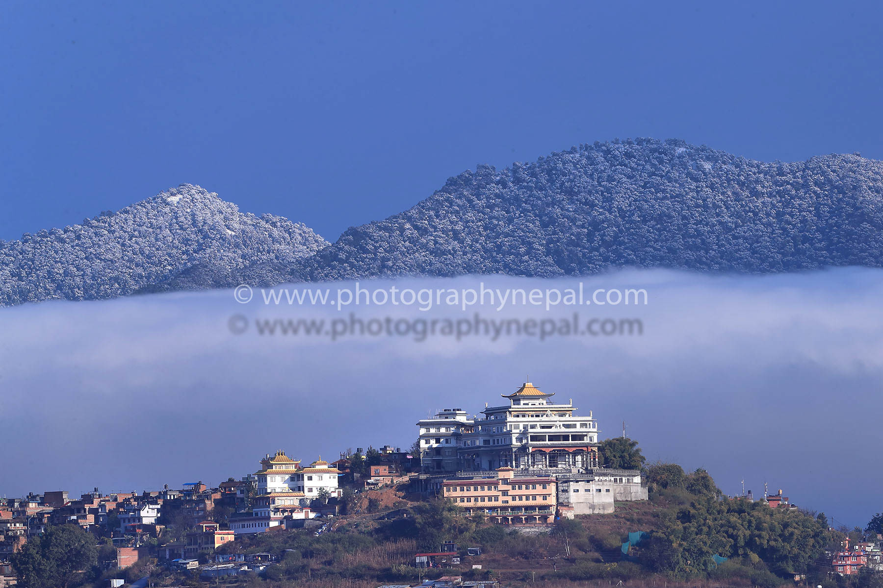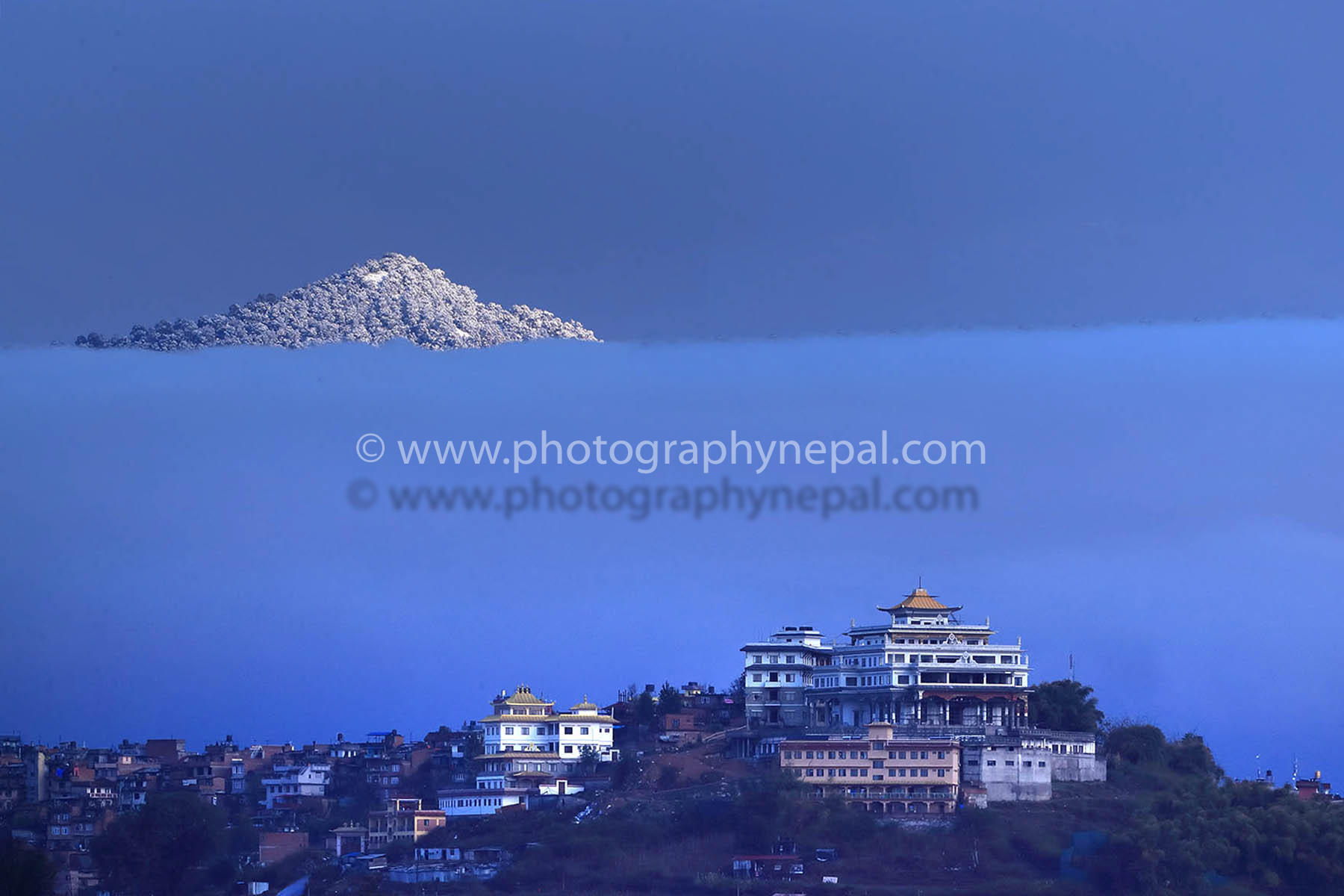 Swayambhunath is an ancient religious architecture atop a hill in the Kathmandu Valley, west of Kathmandu city. The Tibetan name for the site means 'Sublime Trees' (Wylie: Phags.pa Shing.kun), for the many varieties of trees found on the hill Lo Manthang